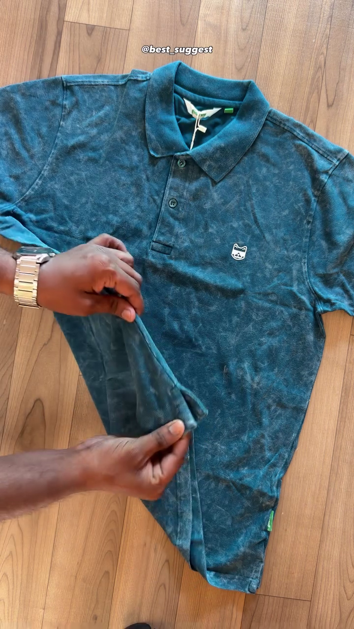 Men Bio Finish Washed Effect Dyed Polo Collar Cotton T-shirt